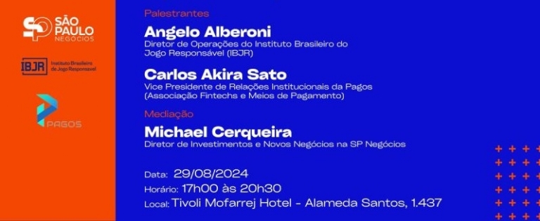 Angelo Alberoni (IBJR Operations Director), Michael Sotelo Cerqueira (SP Negócios Investment and New Business Promotion Director), and Carlos Akira Sato (VP of Institutional Relations at PAGOS) will discuss the paths for the fixed-odds betting segment after the activity is regulated by the Federal Government.