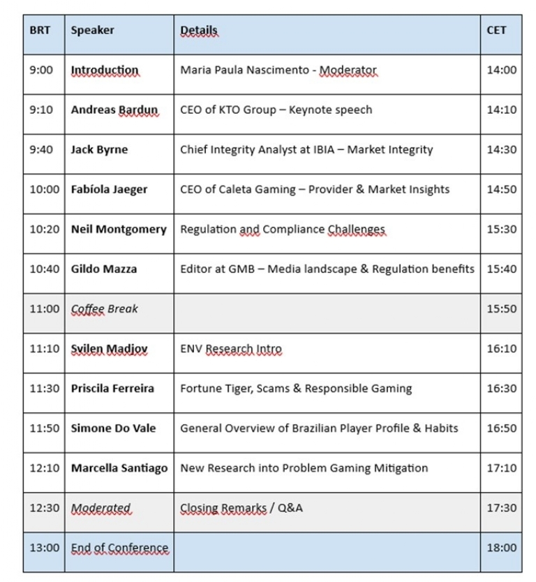 A unique research study on the Brazilian market will be presented at the conference by ENV Media's research fellow, offering new insights into technological tools for preventing pathological gambling and bringing an important reflection for the moment. The full program can be found on the event website.