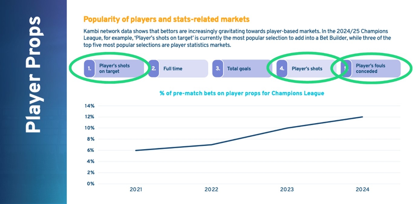 One of the most exciting trends in Europe right now is the surge in popularity of player and stats-based markets. Kambi data from the 2024/25 Champions League shows "Player’s Shots on Target" as one of the most popular Bet Builder selections, with three of the top five pre-match bets now focused on player stats. It’s clear that bettors are looking for deeper, more personalised insights—a shift we’re confident will resonate with Brazilian fans too.
