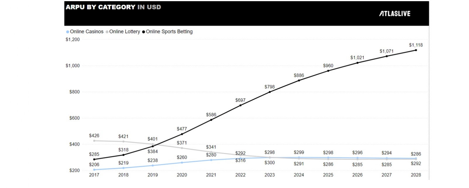The gap between ARPU for online sports betting and other categories will widen dramatically by 2025 and beyond. Sports betting is not just the leader — it’s the engine driving the future of gaming revenue growth.
