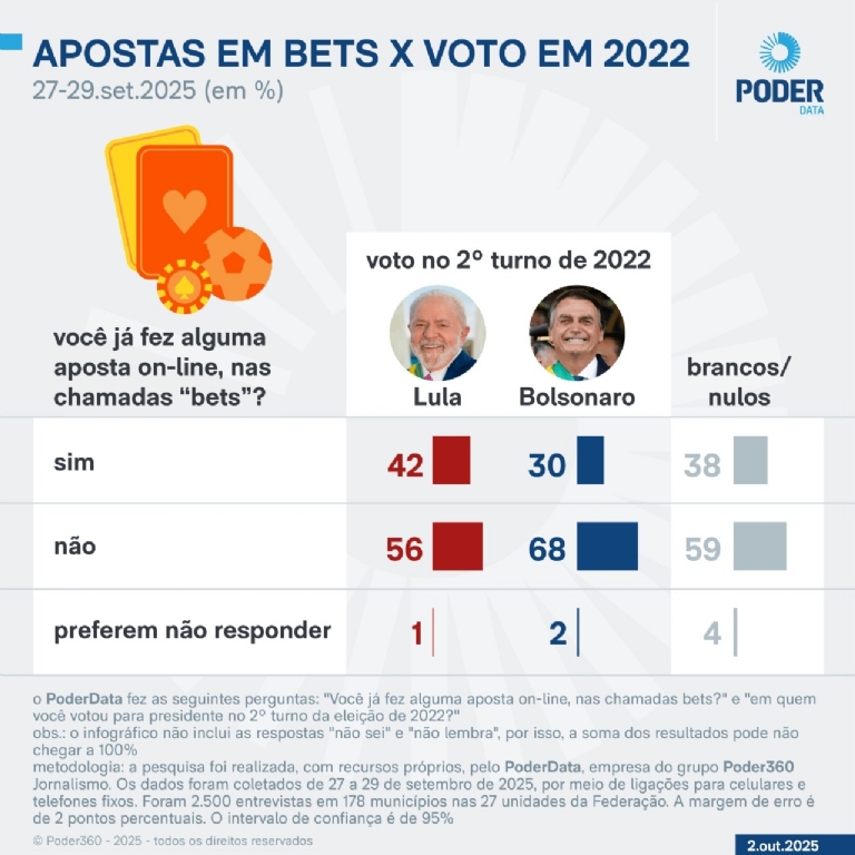 The survey was conducted by PoderData, a company of the Poder360 Journalism group, using its own resources. Data were collected from September 27 to 29, 2025, through calls to cell phones and landlines. 2,500 interviews were conducted in 178 municipalities across the 27 states of the Federation. The margin of error is 2 percentage points. The confidence interval is 95%.