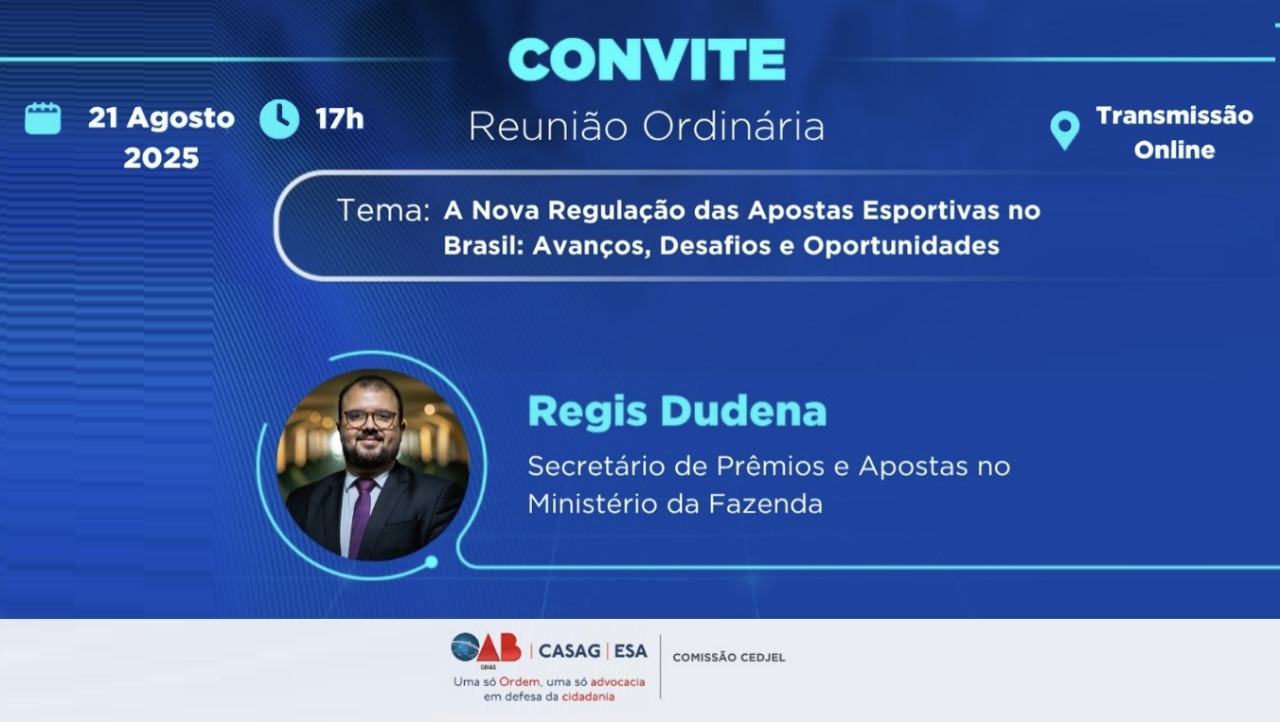 The inaugural meeting will take place on August 21 and will feature a lecture by the Secretary of Prizes and Betting of the Ministry of Finance, Regis Dudena. The theme will be “The New Regulation of Sports Betting in Brazil: Progress, Challenges, and Opportunities.”