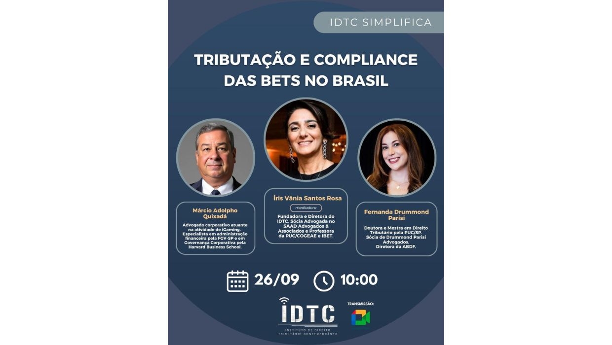 This edition will feature tax lawyers Fernanda Drummond Parisi — PhD in Tax Law from PUC/SP, Director of ABDF, and partner at Drummond Parisi Advogados — and Márcio Adolpho Quixadá, a specialist in Corporate Governance from Harvard Business School and active in the iGaming sector.