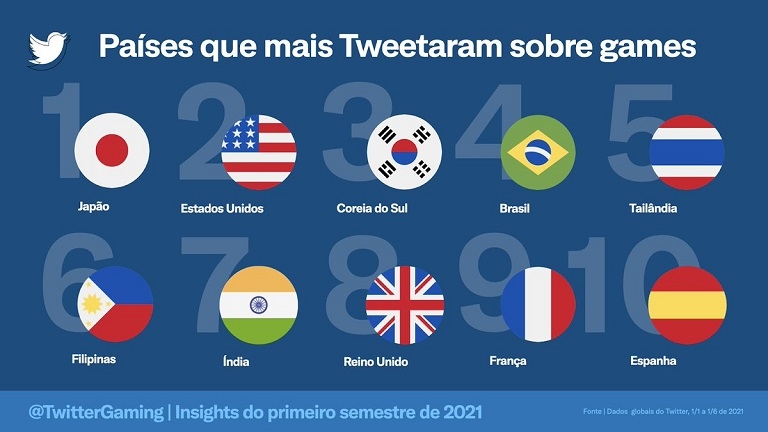 Os brasileiros são grande parte de todo o sucesso dos games no Twitter. Brasil foi o 4º país que mais comentou sobre o assunto na plataforma entre janeiro e junho deste ano: