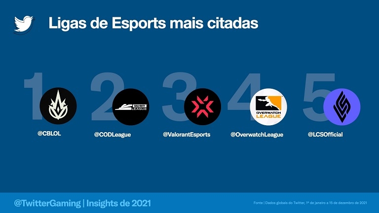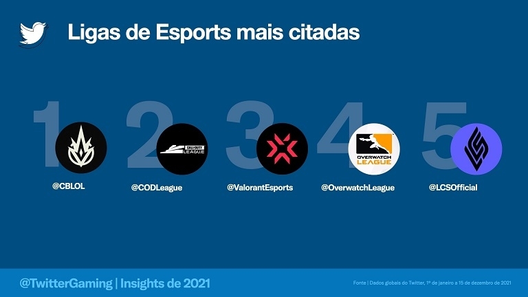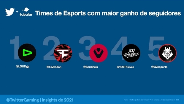 Além disso, o time brasileiro LOUD eSports foi o que mais ganhou seguidores globalmente em 2021 e o @CBLOL foi o campeonato mais comentado em todo o mundo.