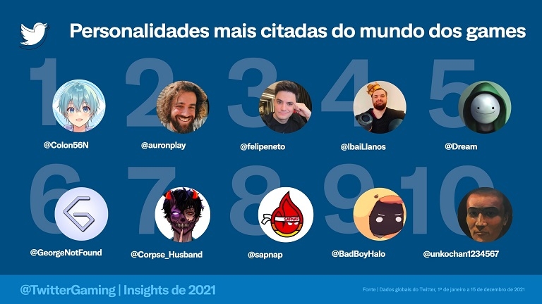 Ao longo do ano, a comunidade de games de todo o mundo foi ao Twitter para falar sobre os maiores momentos. Enquanto os eventos presenciais de eSports retornaram, as editoras lançaram novos jogos, como Halo Infinite, os meios de comunicação continuaram a expandir a cobertura do tema e os NFTs se tornaram grande destaque.