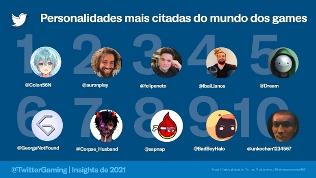 Em 2021, o Twitter continuou sendo ponto de encontro entre desenvolvedores de jogos, streamers, criadores de conteúdo, ligas, times, jogadores e comentaristas. Ao todo, foram contabilizados mais de 2,4 bilhões de Tweets sobre games no ano, um aumento de 14% em relação a 2020 e 10 vezes maior que em 2017. O quarto trimestre de 2021 foi o trimestre com maior volume de conversas sobre o tema na história do Twitter.
