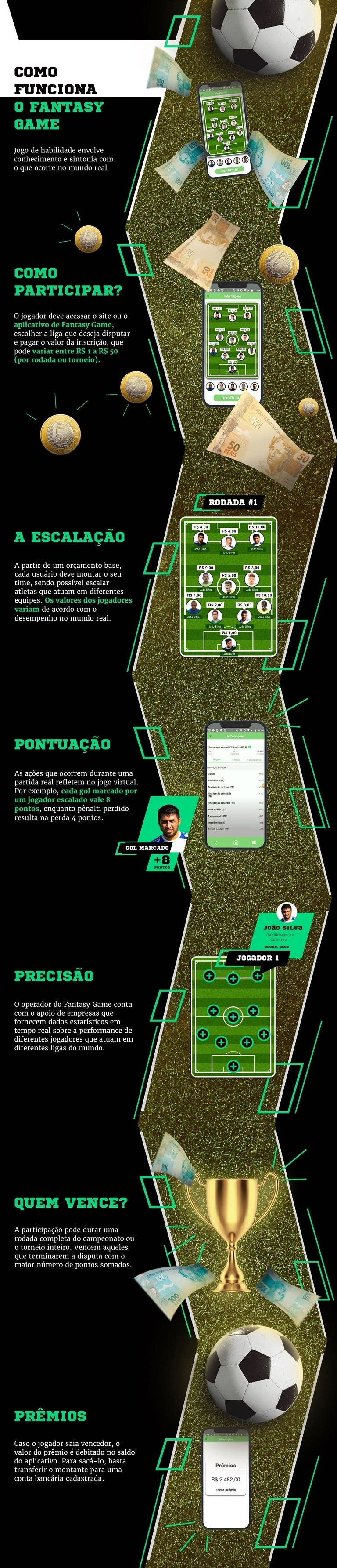 Pontua mais os usuários que acertarem um maior número de variáveis de acordo com o desempenho dos jogadores selecionados, como gols marcados, faltas sofridas, escanteios cobrados e muitas outras métricas típicas das partidas de futebol.