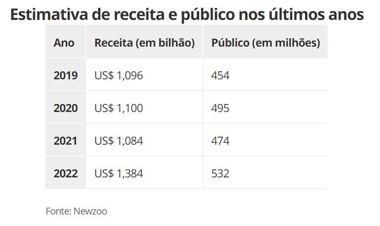 Estima-se que o público global de eSports alcance 532 milhões de pessoas até o final de 2022, com os entusiastas crescendo para 261,2 milhões. O público total em 2025 deve chegar a 640 milhões, de acordo com o estudo.