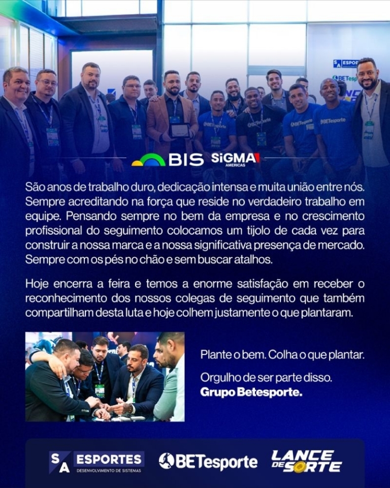 Foi uma solução totalmente redesenhada do zero para trabalhar com tudo de mais moderno e o que vai ser exigido no Brasil para a regulamentação. Esse foi o principal objetivo, além de a SA Esportes, também operamos o site BETEsporte.com, que é uma marca muito forte e bastante conhecida em todo o Brasil. Marcamos presença no evento, fazer contato com alguns clientes que já são parceiros de longa data, fechar novos negócios e apresentar nossa nova plataforma para o Brasil e para o mundo todo.