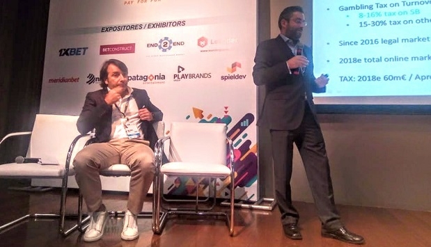 Rui Magalhães iniciou as falas com o comparativo entre Portugal e Espanha, explicando que o mercado espanhol tem impostos justos e um mercado consolidado, enquanto Portugal perde bilhões de euros por ano e tem afastado investidores com 80% de impostos sobre o que é apostado on-line, sendo que nem sempre o operador ganha sobre o que é apostado, por exemplo. Já na Espanha o imposto é de cerca de 25% do bruto que o operador ganha.