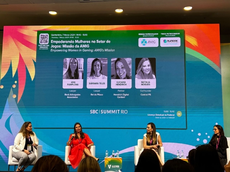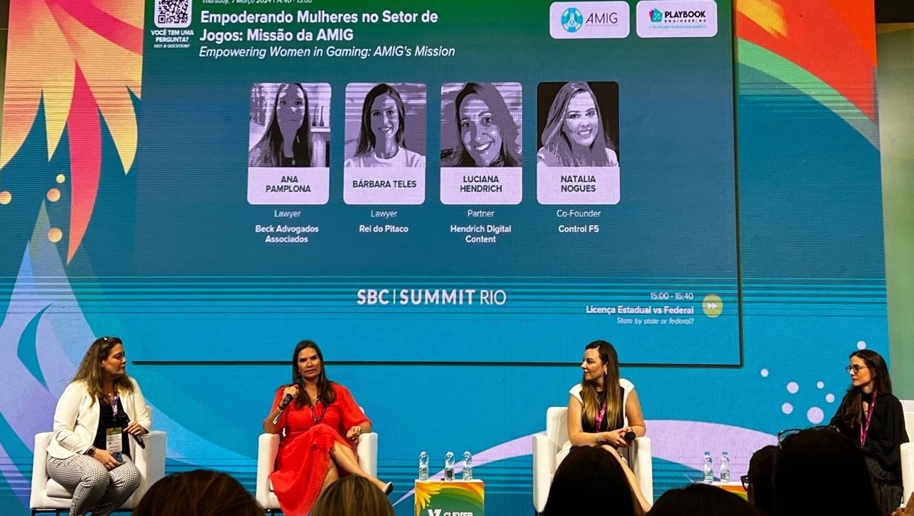 Luciana Hendrich (Associate Founder / Hendrich Digital Content e Hendrich Advogados), Ana Helena Karnas Hoefel Pamplona (Sócia / AHP Advocacia), Natalia Nogues (Sócia Investidora / Control F5 Gaming) e Bárbara Teles (Advogada Regulatória e Relações Governamentais/ Rei do Pitaco)