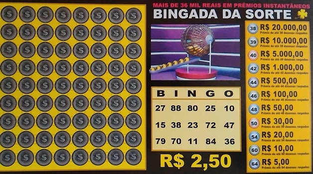 As cartelas, com 90 números, são vendidas pelos bicheiros a R$ 2,50 e pagam prêmios instantâneos que chegam a R$ 20 mil, para quem acertar os 15 números da cartela com 38 raspadas.