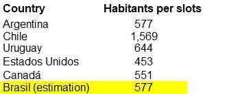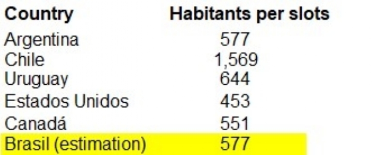 Lannes destacou as dimensões do mercado brasileiro, com 207 milhões de habitantes, e fez uma comparação com a Argentina com 40 milhões de habitantes e uma média de 577 habitantes por caça-níqueis e um total de 70.000 vagas na Argentina (1).