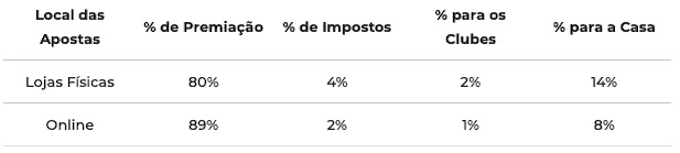 No final de 2018, foi aprovado um projeto de lei que autoriza a exploração das apostas chamadas “por quotas fixas” de premiação. Ou seja, quem aposta sabe de antemão qual o prêmio caso acerte o prognóstico. A lei definiu a distribuição do valor arrecadado da seguinte forma: