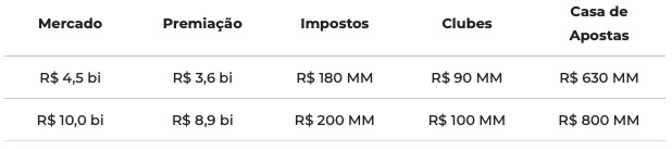 A atividade está em processo de regulamentação no país e, se seguir os trâmites esperados, deve entrar em operação no 2º semestre de 2020. Independente das previsões de valores a serem aportados nos clubes, é impossível dissociá-los à realidade financeira do negócio. Se para R$ 10 bilhões de movimento as casas de apostas ficarão com R$ 800 milhões brutos, não dá para imaginar que muito mais que 10% ou 20% acabe retornando aos clubes de alguma das formas citadas.