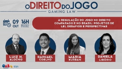 Acontecerá nesta sexta-feira, 9 de outubro, o segundo encontro sobre “O Direito do Jogo”, organizado pela Escola Superior de Advocacia do Espírito Santo. O objetivo do evento é apresentar para advogados e demais profissionais do meio jurídico a importância da regulamentação da atividade no Brasil. No primeiro webinar, Gildo Mazza, jornalista do GMB, falou sobre o que a indústria de jogos espera em relação a uma legislação perene.