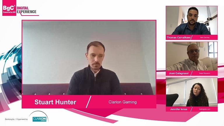 Carvalhaes questionou Stuart Hunter sobre como se pode alcançar desafios e crescer num momento de pandemia, tendo em vista que o mercado de jogos foi impactado pela Covid-19. O executivo da Clarion Gaming disse que o mundo dos eventos teve de pensar rapidamente uma nova maneira de oferecer encontros de qualidade e um dos exemplos é o BgC Digital Experience: “Realizamos um grande volume de eventos presenciais em todo o mundo e obviamente a ICE London é o mais importante deles e com a Covid-19 tivemos de pensar em como chegar aos clientes e como alcançar o público na ausência de eventos presenciais. Aqui neste encontro temos a oportunidade de oferecer aprendizado e networking e foi uma boa solução provisória até que voltemos a ter encontros presenciais”.