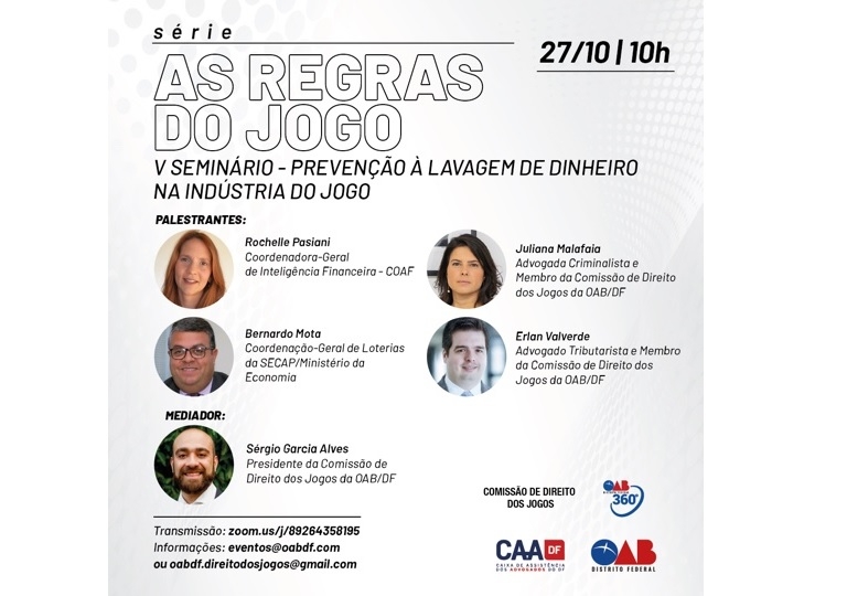 O tema lavagem de dinheiro tem sido apontado, por opositores da regulamentação dos jogos no Brasil, como uma das razões para a oposição à aprovação de um marco regulatório para o setor. Para combater os argumentos contrários ao jogo, a Comissão de Direito dos Jogos da Ordem dos Advogados do Brasil Seccional Distrito Federal realizará no próximo dia 27 de outubro, às 10 horas, o webinar “Prevenção à lavagem de dinheiro na indústria do jogo” na já consagrada série “As Regras do Jogo”.