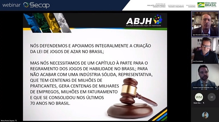 Mesmo defendendo e apoiando integralmente a criação de uma lei de jogos de azar no Brasil, o grupo representado por Igor e Biase destacaram que pretendem criar um capítulo à parte nas discussões sobre jogos no país especialmente para os jogos de habilidade.