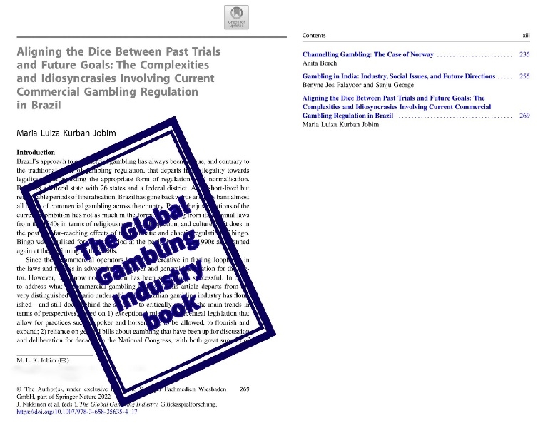 Um dos capítulos é justamente dela e tem o título de “Aligning the Dice Between Past Trials and Future Goals: The Complexities and Idiosyncrasies Involving Current Commercial Gambling Regulation in Brazil”.