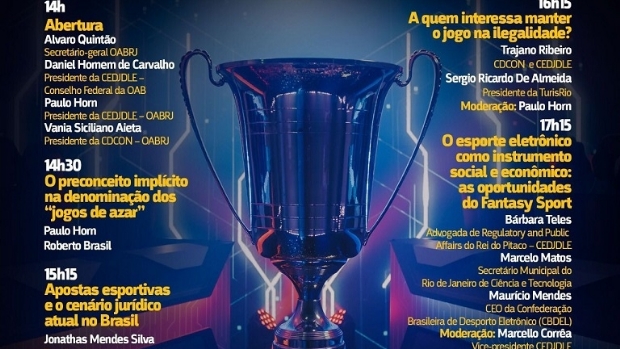 Acontece nesta quarta-feira, 13, o primeiro encontro do Ciclo de Debates sobre a Regulamentação de Jogos Desportivos, Lotéricos e Entretenimento da OAB-RJ. A primeira edição do encontro começará às 14 horas com abertura de Álvaro Quintão, secretário-geral da OAB-RJ, Paulo Horn, presidente da Comissão Especial de Direito dos Jogos Esportivos, Lotéricos e Entretenimento da OAB do Rio de Janeiro, Daniel Homem de Carvalho, presidente da Comissão de Jogos da OAB Nacional, e Vania Siciliano Aieta, advogada especializada em Direito Eleitoral e presidente da Comissão de Direito Constitucional da OAB.