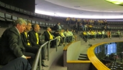Mais tarde, os cerca de 50 lotéricos que estavam na Câmara se dirigiram para o plenário para acompanhar a votação do requerimento de urgência, previsto para a sessão plenária que se iniciaria às 18h. Contudo, houve uma demora em iniciar os debates, pois só houve quórum por volta das 21h e, dos itens na pauta, somente o 6º item, de interesse para a Classe lotérica entrou em votação por haver discordância dos membros da Casa nos demais. Vale destacar que durante os debates, o deputado Goulart fez um discurso acalorado em defesa dos lotéricos que levantou os ânimos presentes mas muitos deputados também destacaram a importância da Categoria em suas falas.
