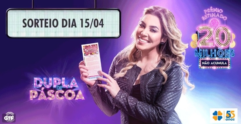 A Dupla de Páscoa pagará o prêmio de R$ 20 milhões no próximo sábado, dia 15. Todas as apostas na Dupla Sena registradas nas casas lotéricas já estão voltadas ao concurso especial. Os interessados poderão realizar as apostas até uma hora antes do sorteio, que será realizado às 20h, no Caminhão da Sorte, que estará estacionado em Canela (RS).