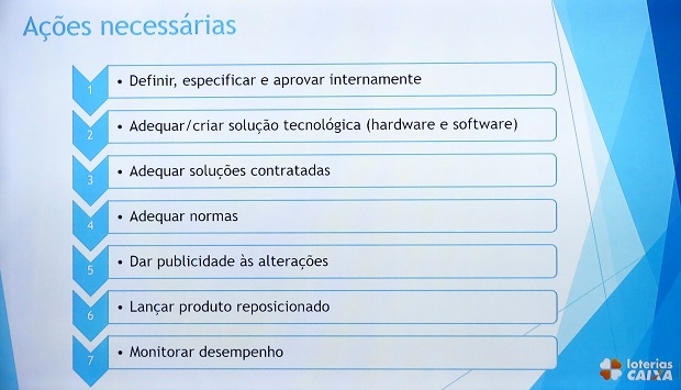 Foi explicado também um pouco de detalhes técnicos que influenciam a premiação dos jogos utilizando como exemplo a Lotofácil e, ainda, questões técnicas que impedem uma melhor distribuição de cotas dos bilhetes.