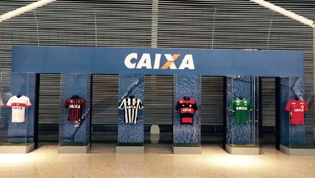 Quatorze clubes de futebol exibem a logomarca da Caixa em seus uniformes — entre eles, Flamengo, Cruzeiro, Atlético MG, Bahia, Ceará, Fortaleza e Goiás.