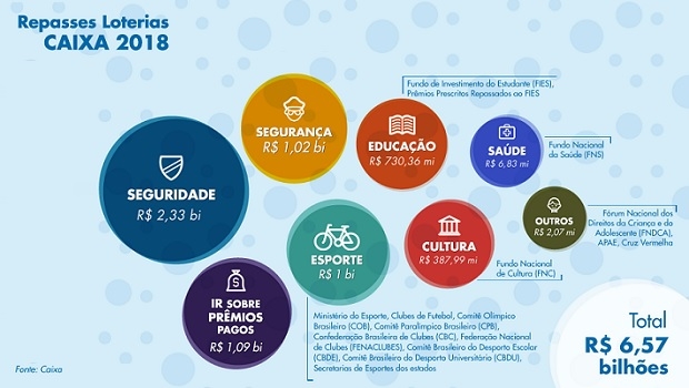 Apenas para o Comitê Olímpico (COB) e Comitê Paralímpico Brasileiro (CPB) foram repassados mais de R$ 360 milhões. Em 2018, o COB recebeu R$ 230 milhões da arrecadação das Loterias CAIXA. “Os recursos são fundamentais para a realização dos projetos esportivos do COB e também das confederações olímpicas”, disse o diretor geral do COB, Rogério Sampaio, campeão olímpico de judô em Barcelona, em 1992. Ele estima que este ano o Comitê deve receber cerca de R$ 250 milhões.