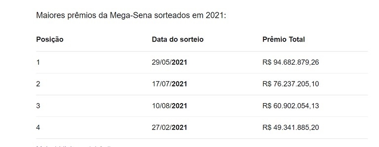 O sorteio será realizado às 20 horas (horário de Brasília) desta quarta-feira, no Espaço Loterias CAIXA, localizado no Terminal Rodoviário do Tietê, em São Paulo (SP), com transmissão ao vivo pelas redes sociais das Loterias CAIXA (perfil @LoteriasCAIXAOficial no Facebook e canal CAIXA no YouTube). O valor de uma aposta simples na Mega é de R$ 4,50.