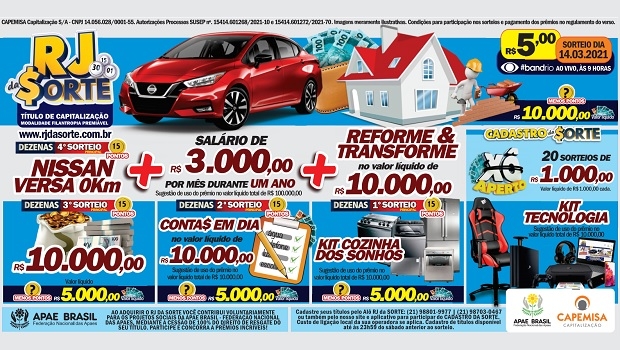 No ‘Cadastro da Sorte’, serão 20 sorteios de R$ 1.000 no ‘Xô Aperto’ e um super ‘Kit Tecnologia’, com computador top de linha e poltrona gamer e mais; para quem incluir os dados do título no site e aplicativo do RJ DA SORTE®, ou comprar online até 13/03.