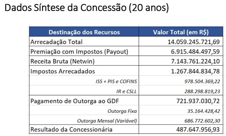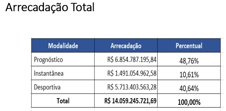 Do total de R$ 21.187.827, o estudo aponta que 58% serão destinados a investimentos na loteria de prognósticos, 17% para a loteria instantânea e 25% para as apostas esportivas. O custo mensal da operação em si, no estudo, alcança R$ 2,8 milhões.