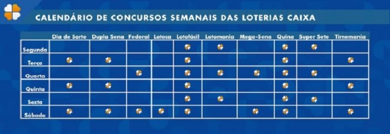 O novo calendário das Loterias Caixa está demonstrado na imagem abaixo: