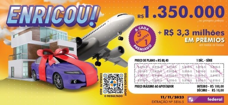 A extração Enricou! acontece uma vez por mês e tem prêmio de R$ 1.350.000,00. Cada bilhete inteiro, composto por 10 frações, custa R$ 100,00. As frações do bilhete também são vendidas separadamente e custam R$ 10,00 cada. O valor da premiação é proporcional à quantidade de frações adquiridas.