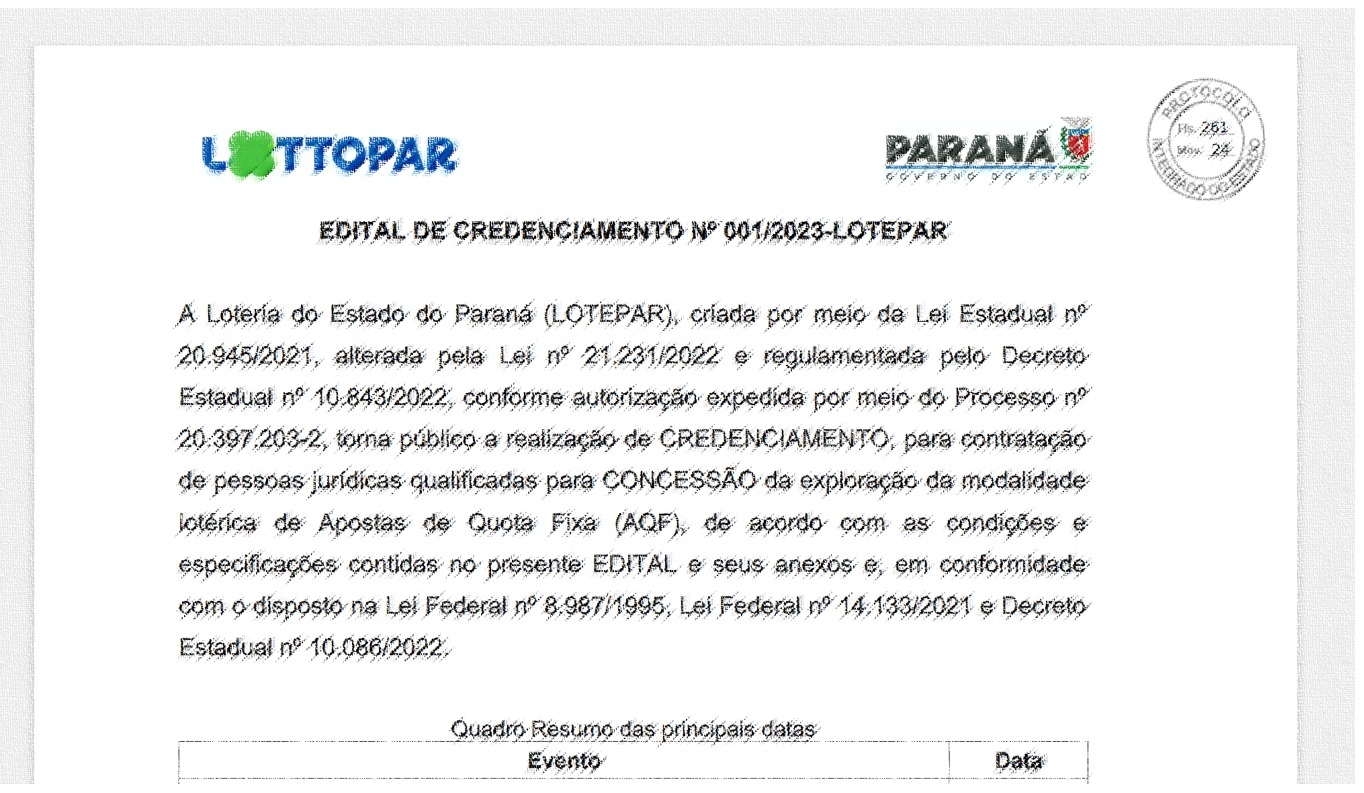Loteria do Paraná publica edital de credenciamento de operadores de apostas esportivas by GAMES MAGAZINE BRASIL on Scribd