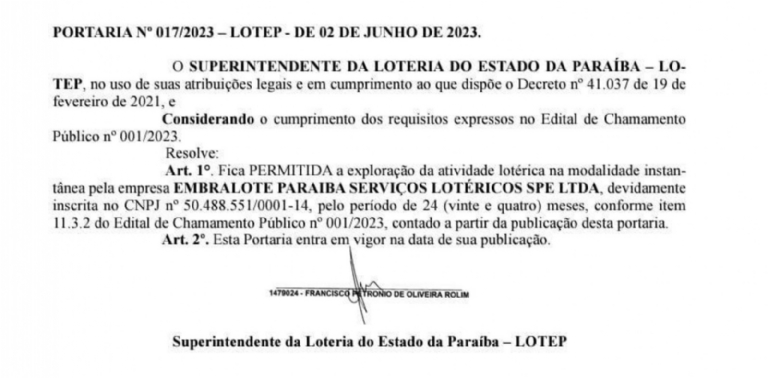 "Nesta nova fase, a loteria pretende trazer parceiros com tecnologia de ponta para a segurança dos apostadores paraibanos. Como somos uma das poucas loterias estaduais que permaneceu aberta mesmo antes da decisão de 2020 do Supremo Tribunal Federal, temos a responsabilidade de ser uma das maiores referências em Loteria para todo o país", afirmou Rolim.