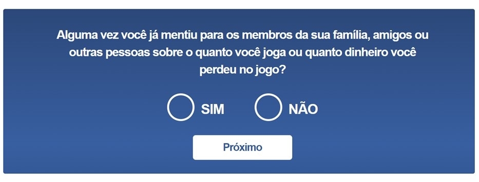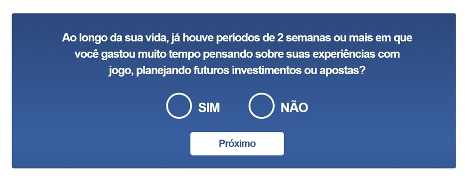 Dentre as perguntas, os jogadores respondem sobre o tempo gasto pensando em apostas, tentativas de parar ou reduzir o jogo e possíveis mentiras sobre sua frequência para amigos e parentes.