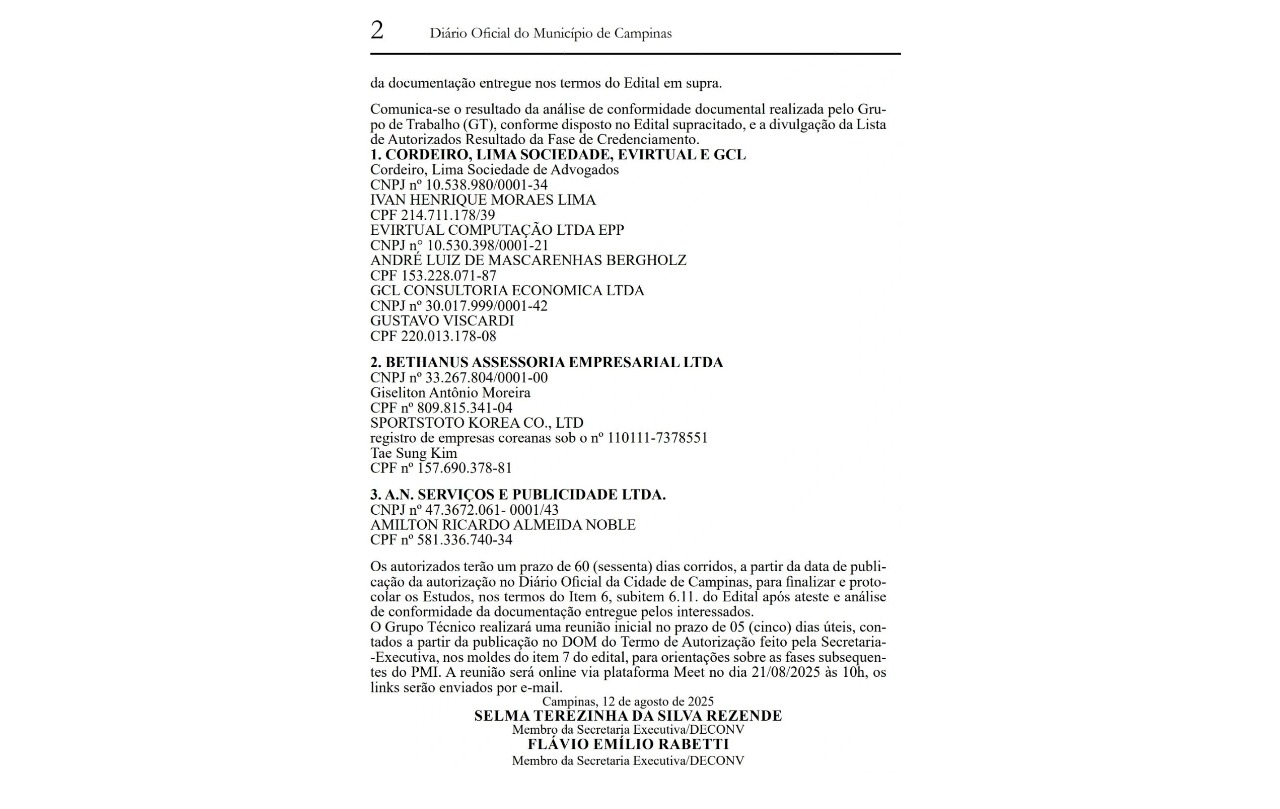 “Com alegria compartilho o meu credenciamento para elaboração dos estudos para realização do PMI no sentido da instituição da loteria municipal em Campinas. A cidade está entre os 5 maiores PIBs de São Paulo e entre os 15 maiores do Brasil. Sua relevância no cenário nacional será um divisor de águas nas loterias municipais”, afirmou Amilton Noble.