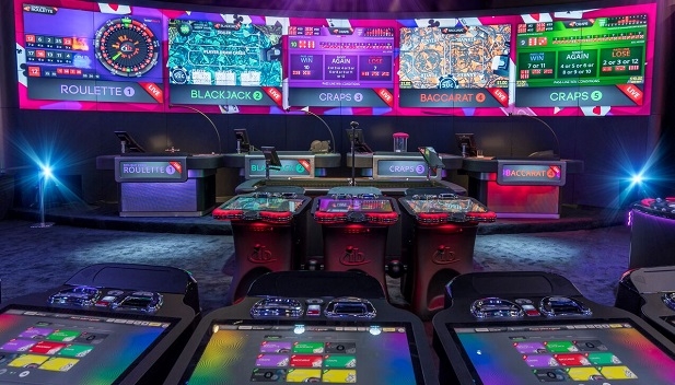 de um ambiente do Stadium. Esta revolucionária mesa de craps cria uma