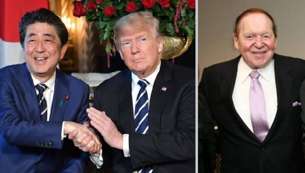 Em fevereiro, apenas dois meses após a aprovação da lei japonesa, Adelson, Trump e Abe estavam todos em Washington ao mesmo tempo, se encontrando separadamente durante almoços e jantares.
