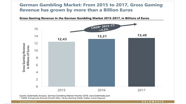 Em 2017, as apostas atingiram o nível mais forte de crescimento de todos os segmentos de jogos de azar, com 17% de aumento na receita bruta de jogos (apostas menos pagamentos) em comparação com 2016. Em comparação com 2015, o mercado cresceu 33% no total. Espera-se que esta tendência positiva continue. A próxima Copa do Mundo da FIFA de 2018 na Rússia estimulará o crescimento adicional de receita para as mais de 90 operadoras de apostas esportivas ativas no mercado alemão.
