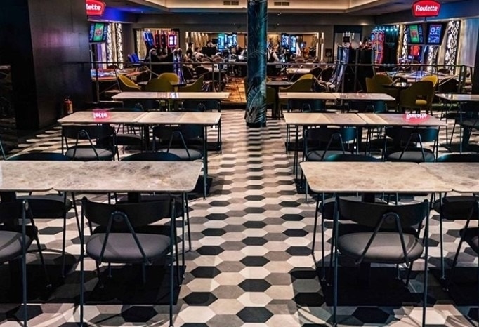 Eduardo Bercovich - O trabalho no Hipódromo de Palermo começou há vários meses com o desenvolvimento do design de tapetes, escolha de cores, estilos, diferentes tipos de design para cada um dos ambientes, tanto em tapetes quanto em revestimentos de parede com base têxtil, antibacteriano e resistente a choques. Também introduzimos como novidade o piso MOODS, que é um Luxury Vinyl Tile, com formas geométricas e resistência de uso, não em um comercial intenso, mas de resistência industrial. Ele é colocado com membrana adesiva para evitar problemas acústicos e de umidade, e que seja confortável para andar sobre.