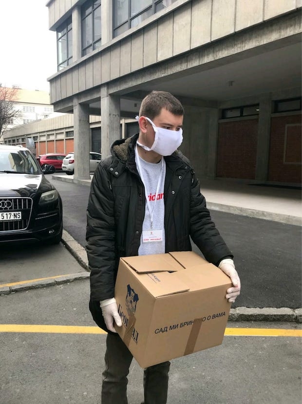 "Nossos funcionários, como voluntários, estão ajudando os municípios da Sérvia e da Cruz Vermelha, porque agora é importante mostrar solidariedade e não deixar que nossos médicos, policiais e soldados suportem o peso dessa crise", explica a empresa.