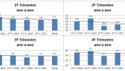 Uma outra observação é sobre o desempenho de cada Trimestre, comparado com os Trimestres correspondentes dos outros anos. Os gráficos a seguir nos mostram que este desempenho não se altera tanto, ou seja, não sofre grandes oscilações, apesar de que neste período o país passou e ainda passa por uma crise econômica muito grave.
