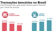 Houve um salto considerável no uso dos Celularese do Internet Banking em detrimento dos postos físicosdisponíveis para as transações bancárias.