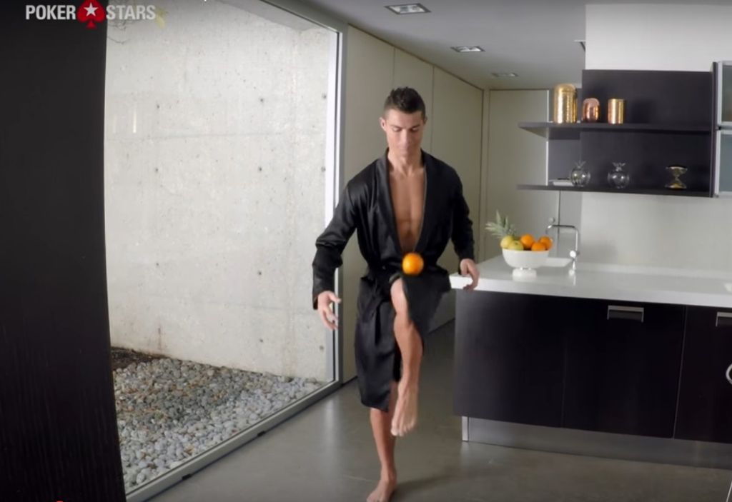 Cristiano Ronaldo fez algumas embaixadinhas com uma laranja em novo vídeo que melhor jogador do mundo, eleito pela FIFA essa semana, protagonizou para a PokerStars.