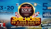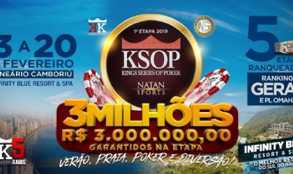 Comemorando seu quinto aniversário, a empresa organizadora do KSOP, Kings Eventos, anúncia 5 milhões garantidos para a 4ª etapa que acontecerá na paradisíaca cidade catarinense, Balneário Camboriú, no Infinity Blue, sua casa. A grande festa acontecerá entre os dias 31 de julho e 07 de agosto. A data e local do quinto e último evento do ano vão ser divulgados em breve.