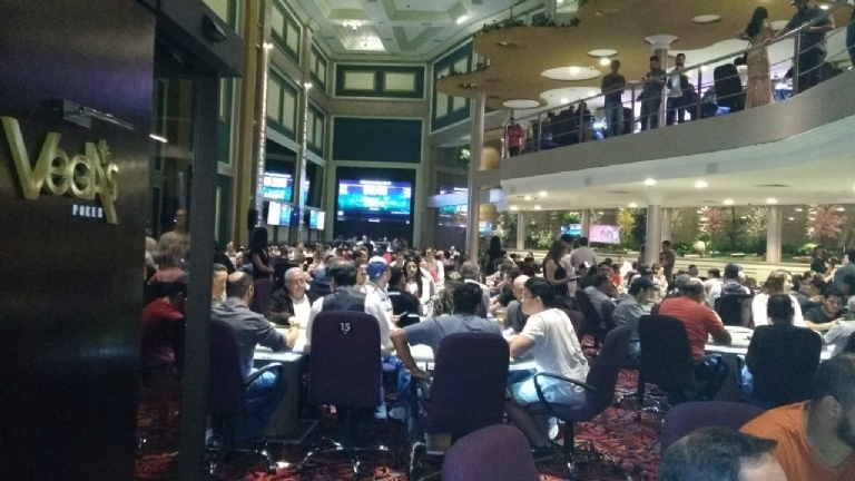 Nas mesas de poker, os jogadores disputavam a primeira noite do torneio “Welcome to Las Vegas”, que vai até quinta-feira com premiação que pode chegar até R$300 mil sendo R$100 mil e uma viagem ao cassino Monticello no Chile garantidos para o grande campeão. A estimativa é que até o final da competição cheguem a 2000 pessoas inscritas no torneio.